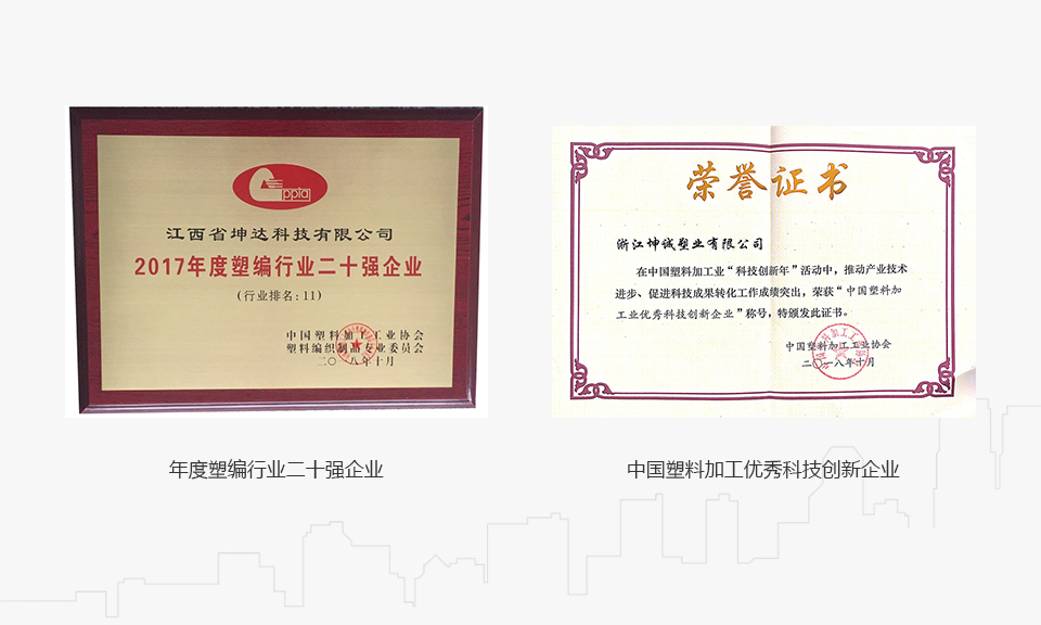 坤達集團始創(chuàng)于2003年,是一個集技術研發(fā)、品牌運營、規(guī)模化生產(chǎn)的塑編包裝產(chǎn)業(yè)鏈企業(yè)。旗下三大生產(chǎn)基地為浙江坤誠塑業(yè)有限公司、江西省坤達科技有限公司和江蘇坤達塑業(yè)有限公司,綜合實力榮登中國塑編行業(yè)十強企業(yè),其中浙江坤誠塑業(yè)有限公司獲評“國家高新技術企業(yè)”、“中國科技創(chuàng)新新銳企業(yè)”、“浙江塑料包裝企業(yè)研究開發(fā)中心”、“浙江省智能工廠(數(shù)字化車間)”、“浙江制造”團體標準起草單位、“溫州市工業(yè)互聯(lián)網(wǎng)平臺”、“溫州市兩化融合試點企業(yè)”等榮譽稱號。